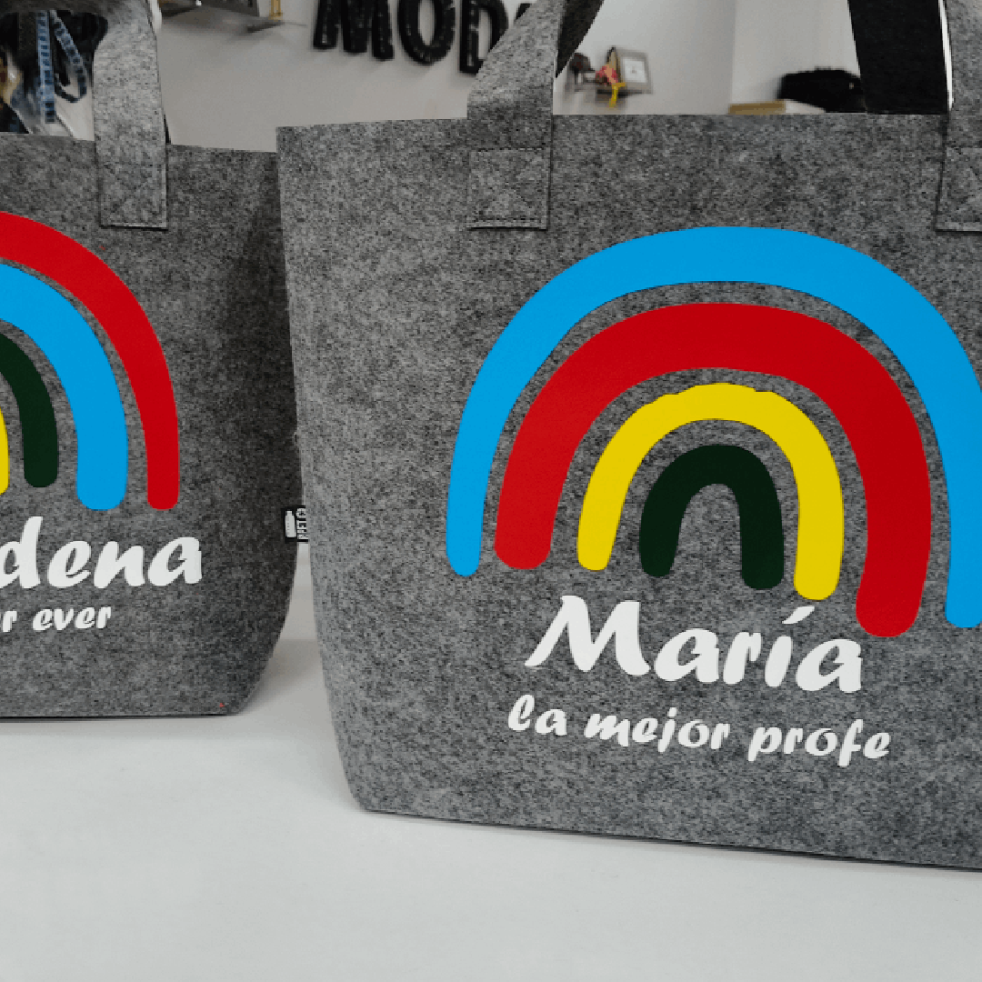 Sé el primero en valorar “Bolso fieltro reciclado arcoíris personalizado”